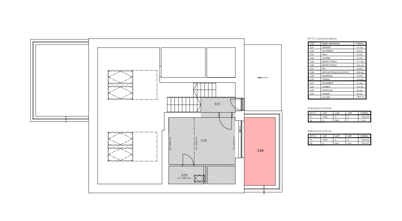 2x parkovací stání + 2x terasa