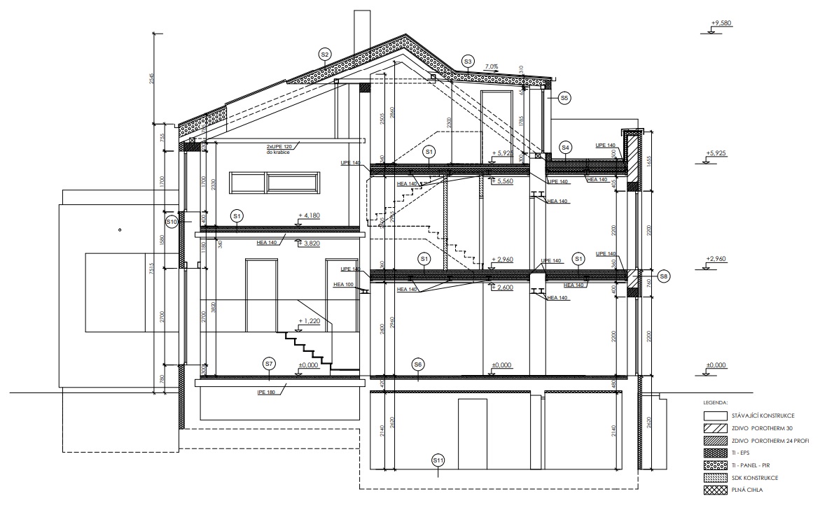 Dvě horní podlaží domu