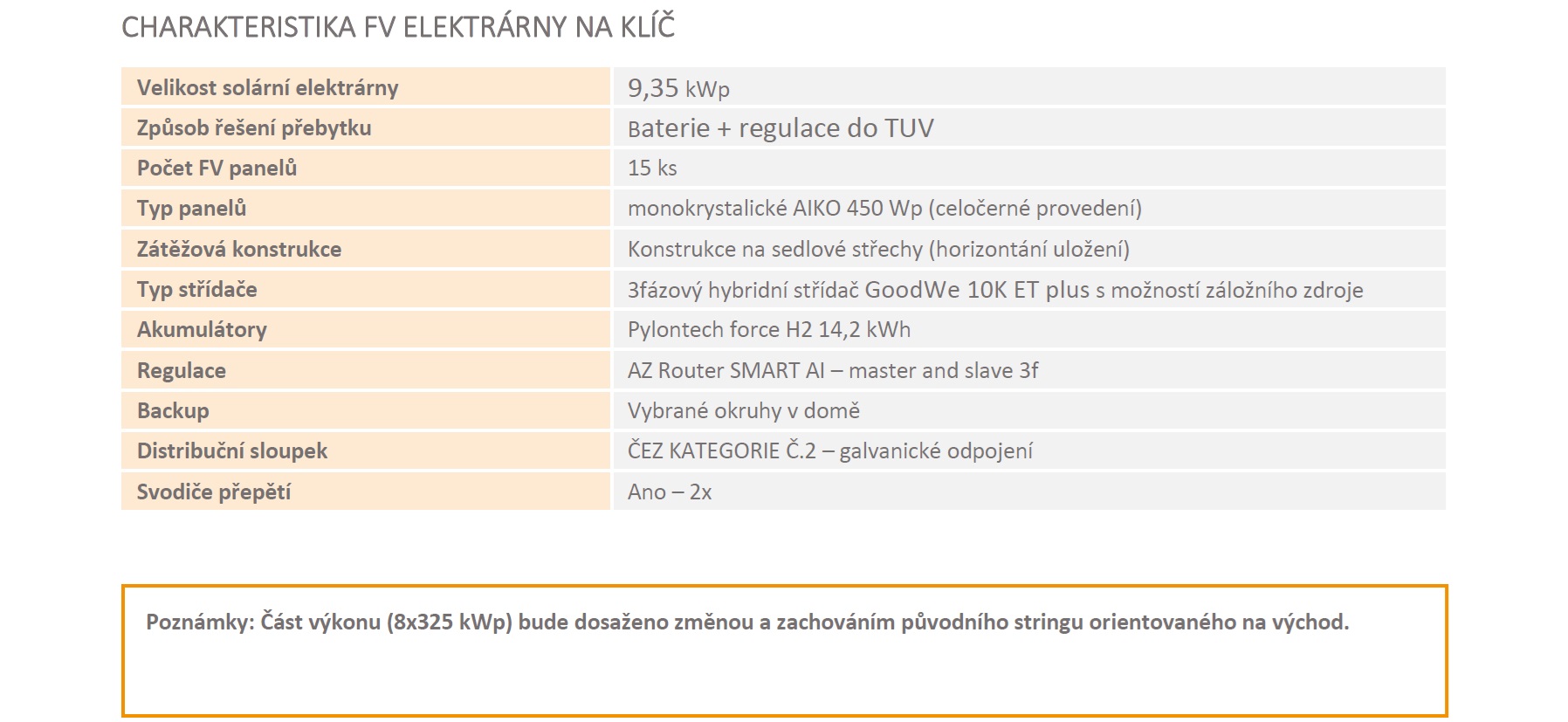 Technické parametry FVE