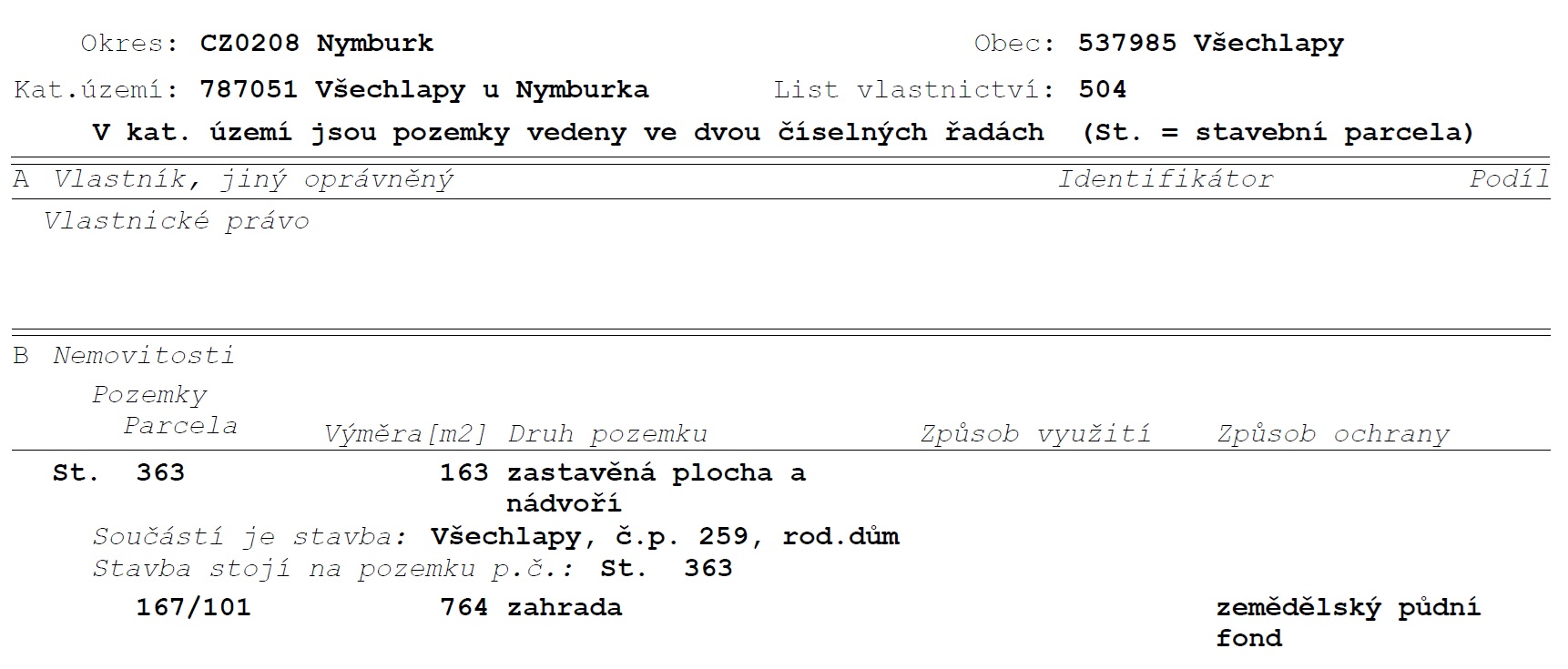 Výpis z katastru - předmět prodeje