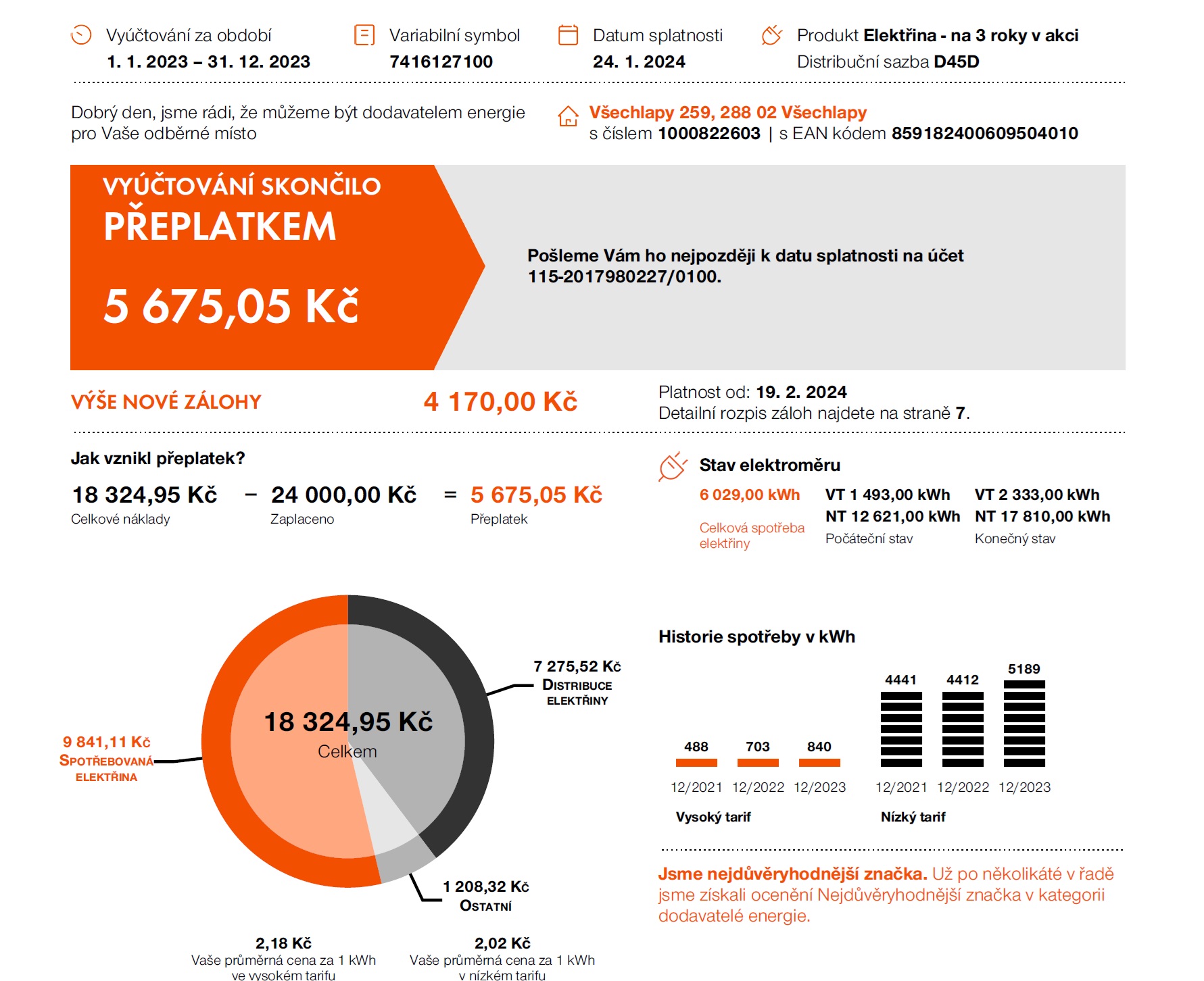 Spotřeba elektřiny na vytápění a ohřev vody | 2023