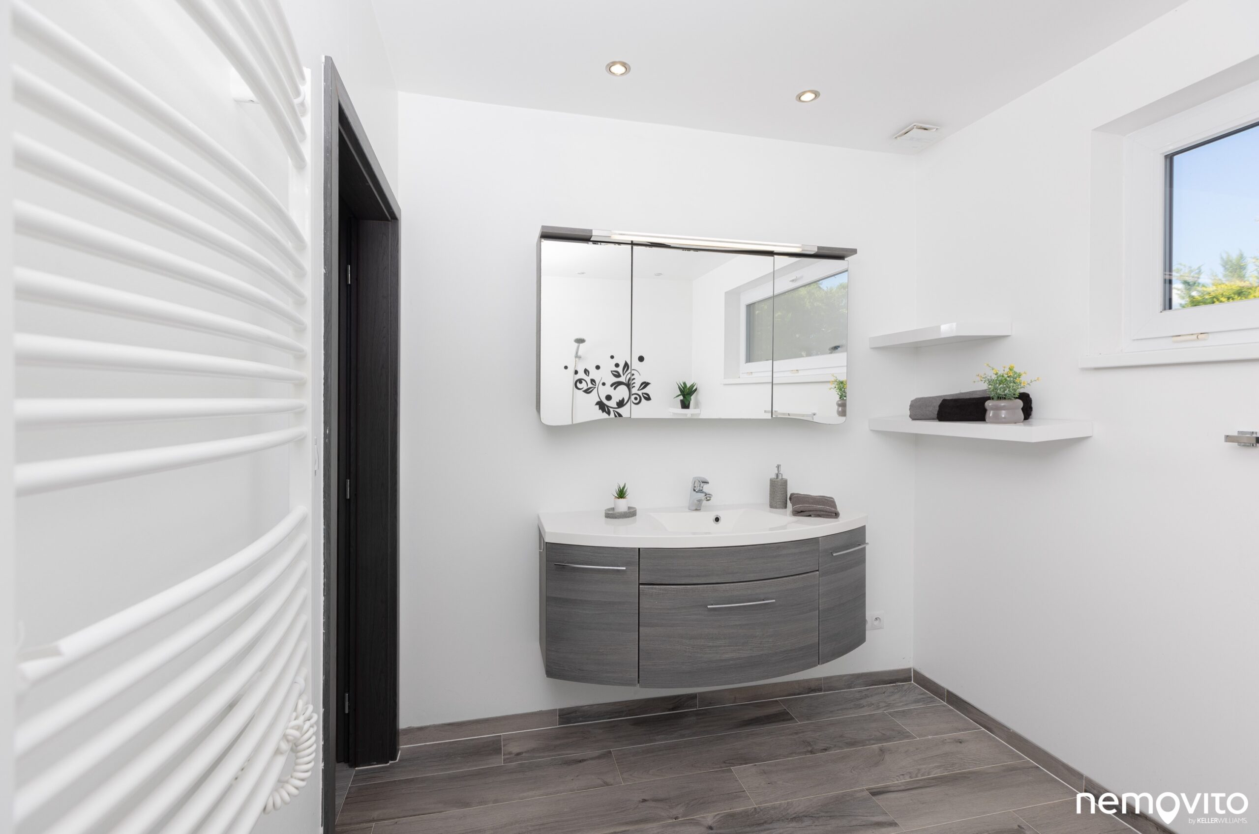 Když už je řeč o teplotě - v domě se můžete těšit také na klimatizaci. Tou můžete chladit, ale zrovna tak přitápět. Primární systém vytápění však zajišťuje tepelné čerpadlo s podlahovkou.