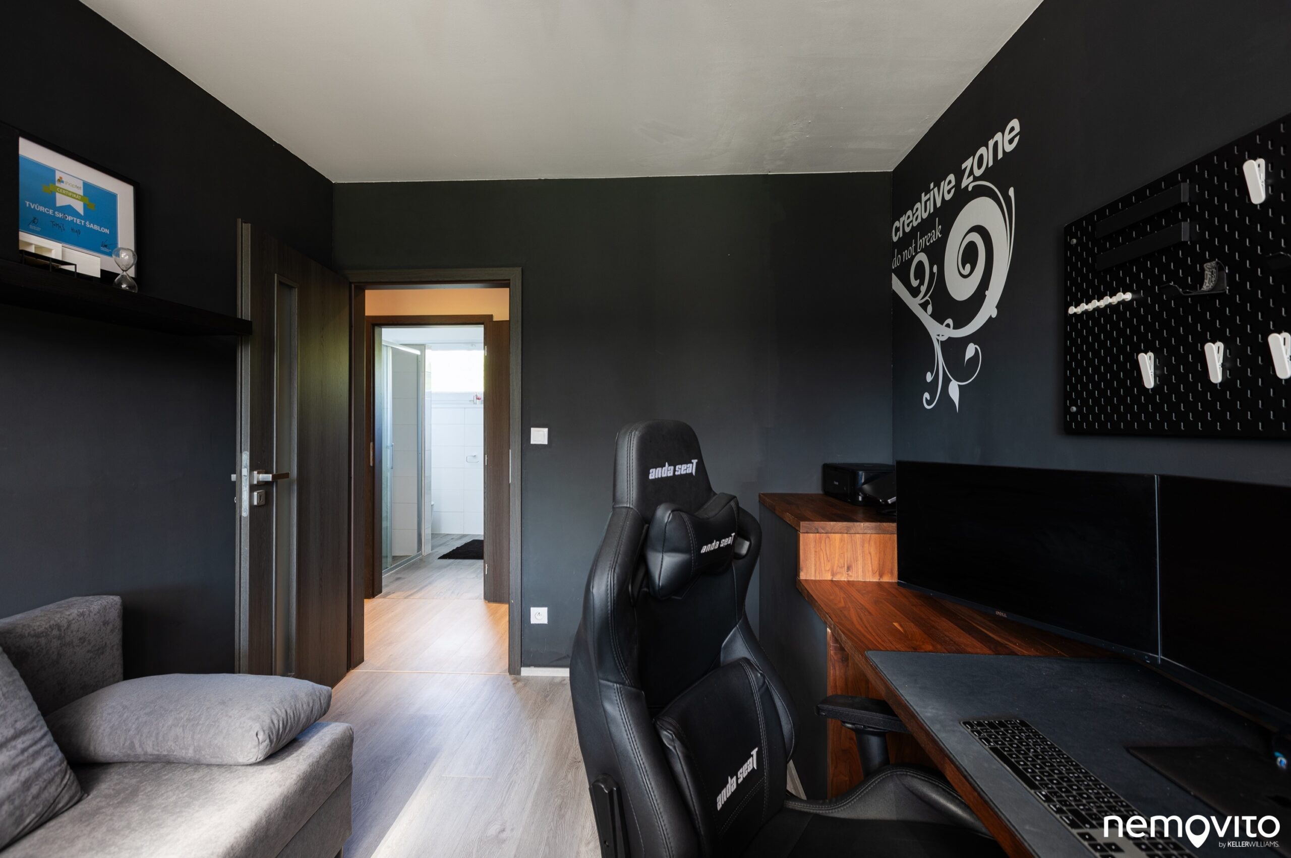 A stejně tak velká je pracovna. Ta je nejblíže obýváku.