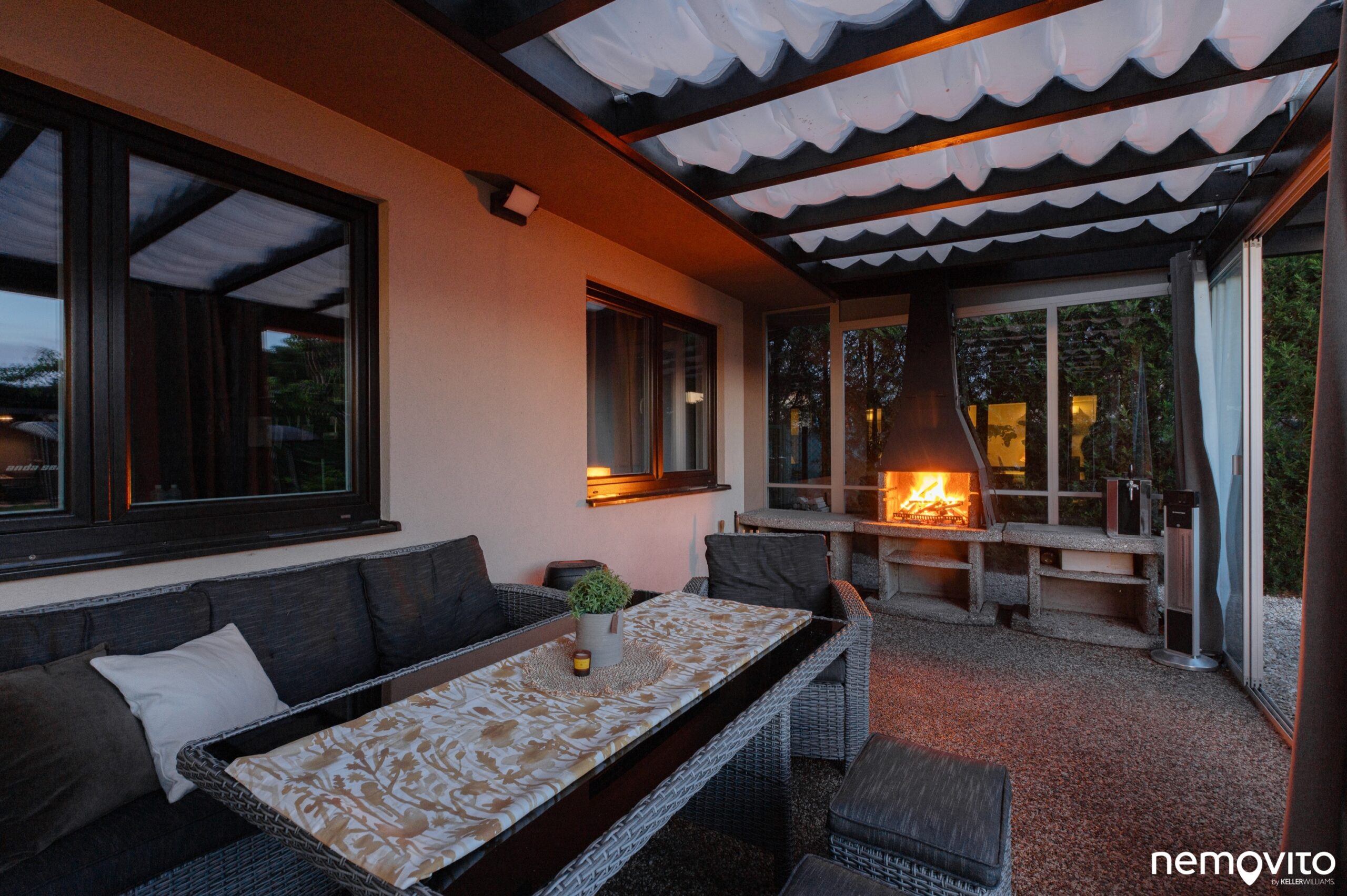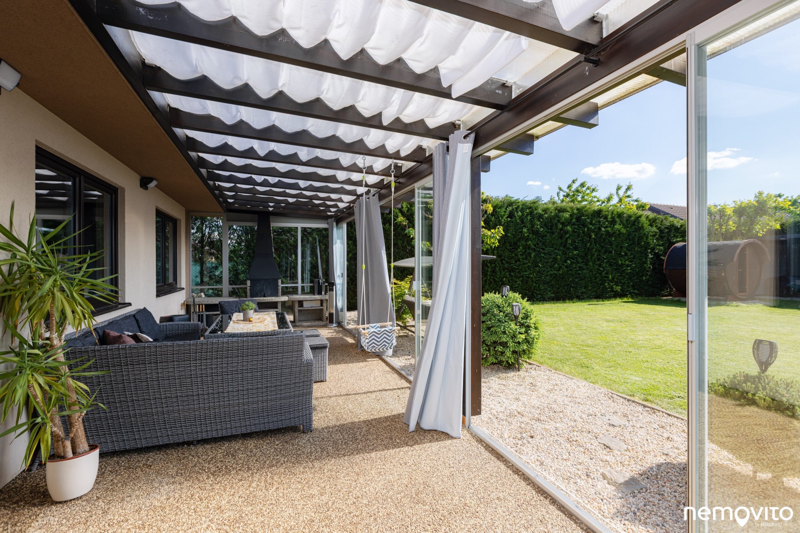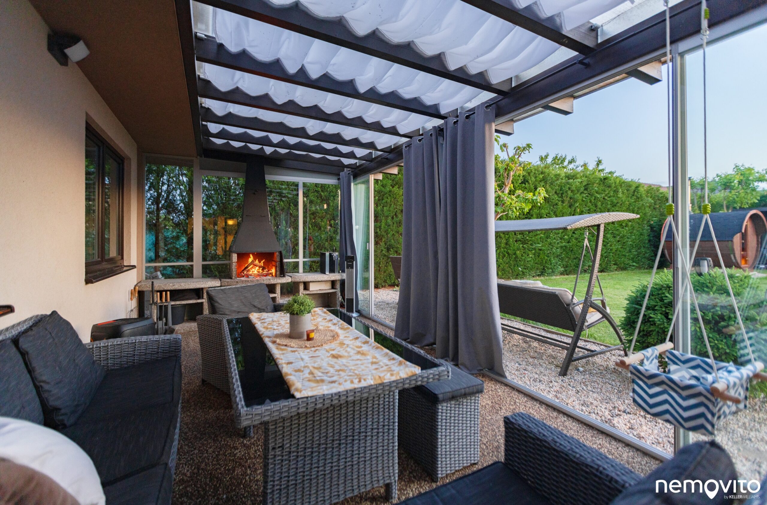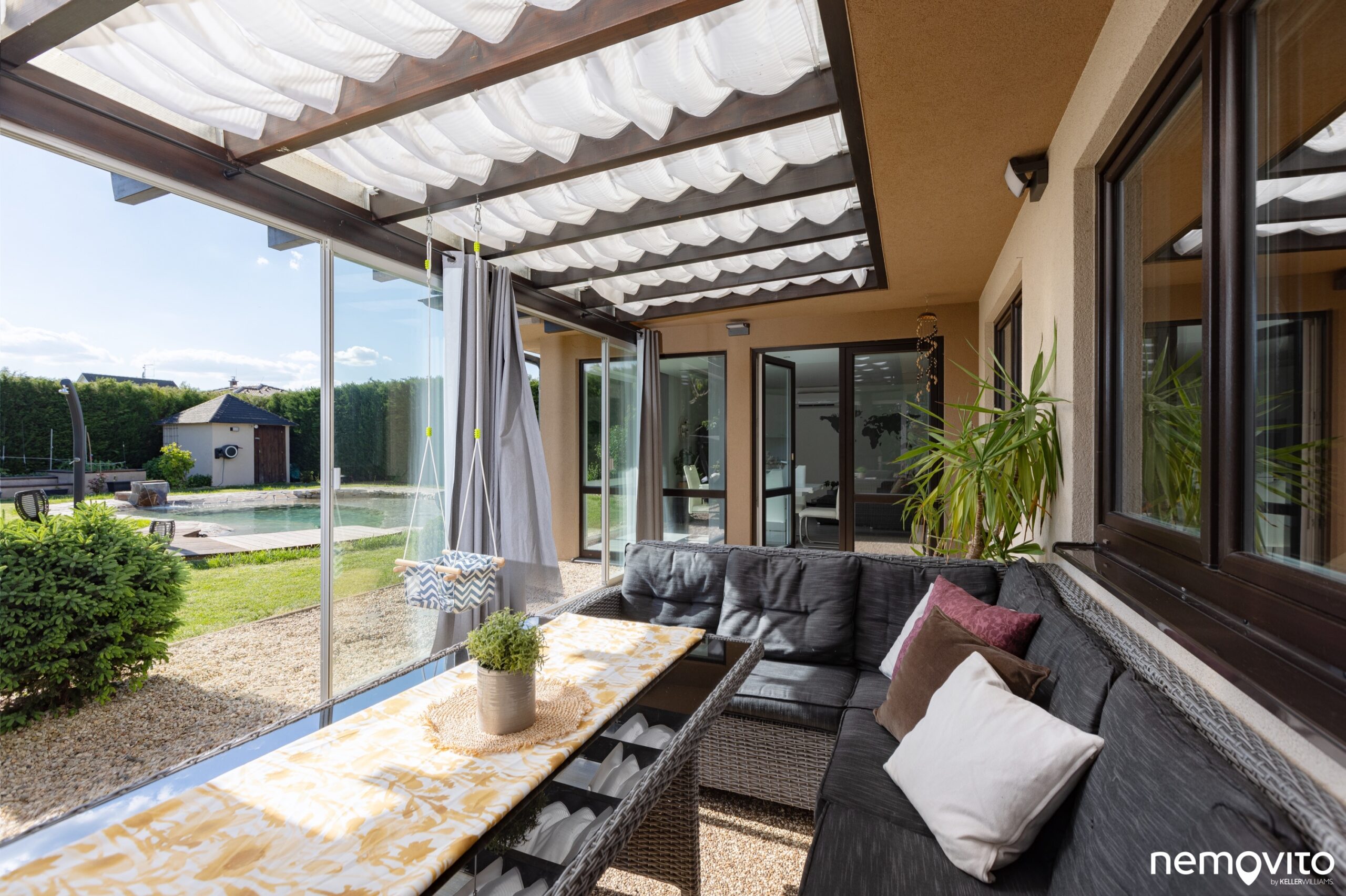 Je využitelná v zimě i v létě. Nežádoucí přehřívání řeší stínící rolety, přičemž zasklení zimní zahrady můžete celé otevřít.