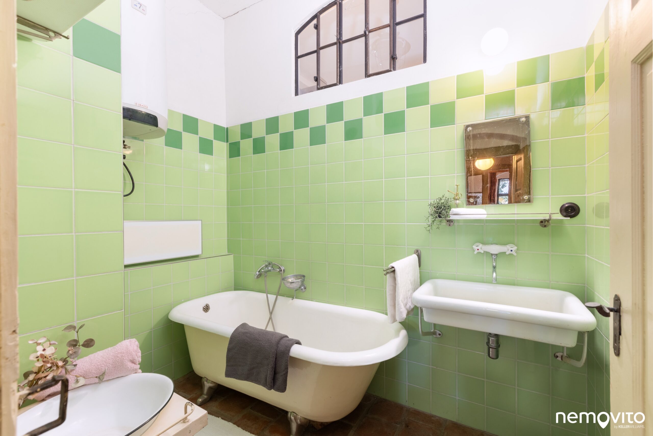 Také v jinak obyčejné koupelně si najdete něco hezkého.
