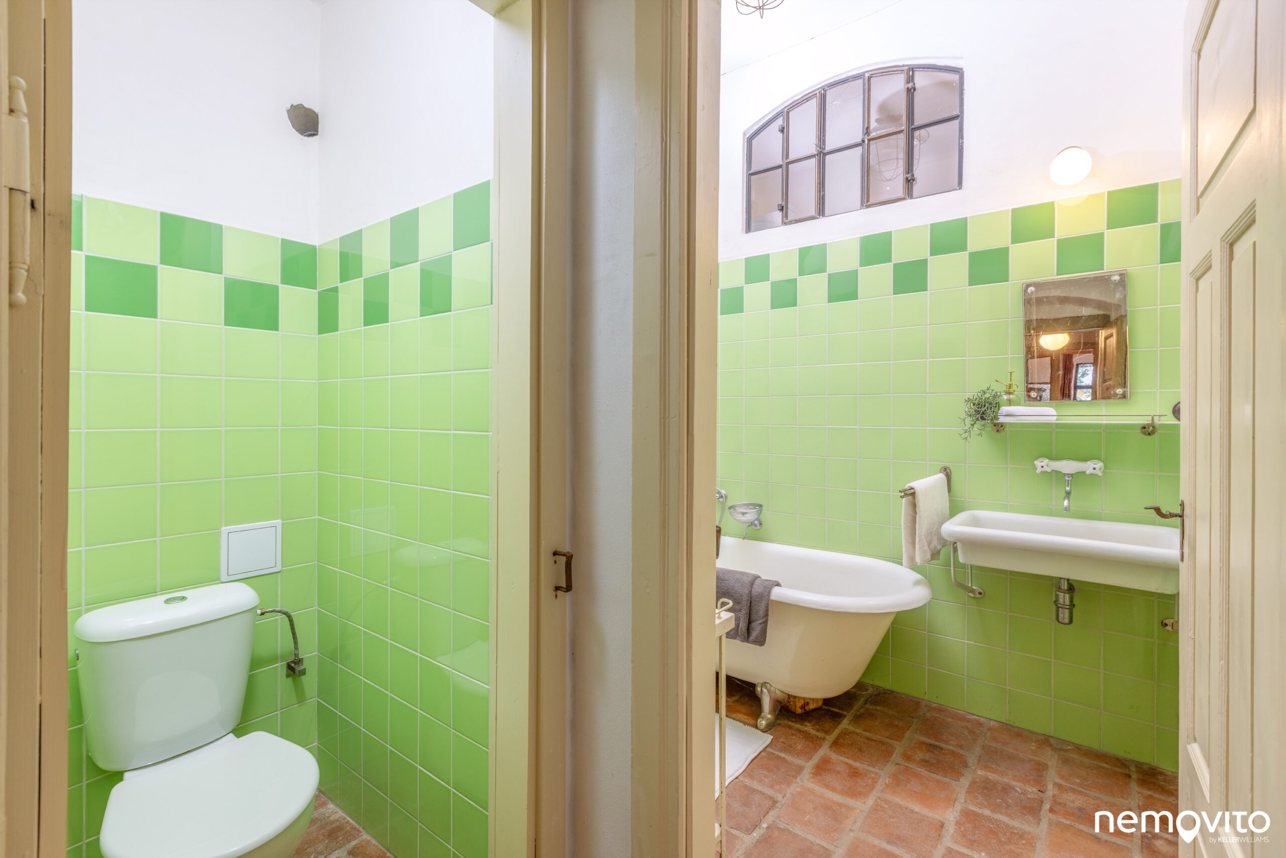 Toaleta je od koupelny oddělená a milým detailem je krásné okýnko směrem do kuchyně.