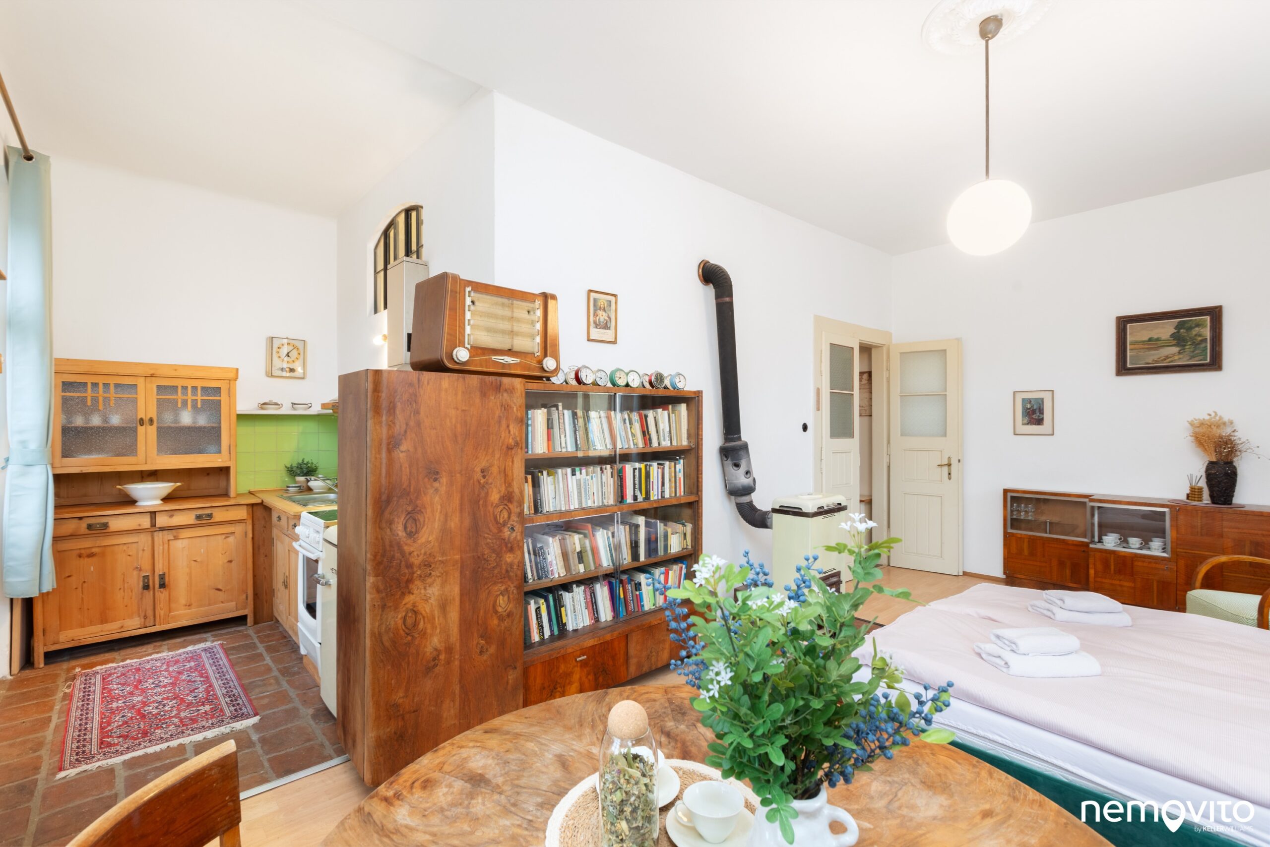 Dohromady by to znamenalo dispozici 2+kk o velikosti 64 m2. Místnost s kuchyní má 29 m2 a okna ze dvou stran. Když se vykloníte z okna kuchyně, výhled je opravdu moc hezký.