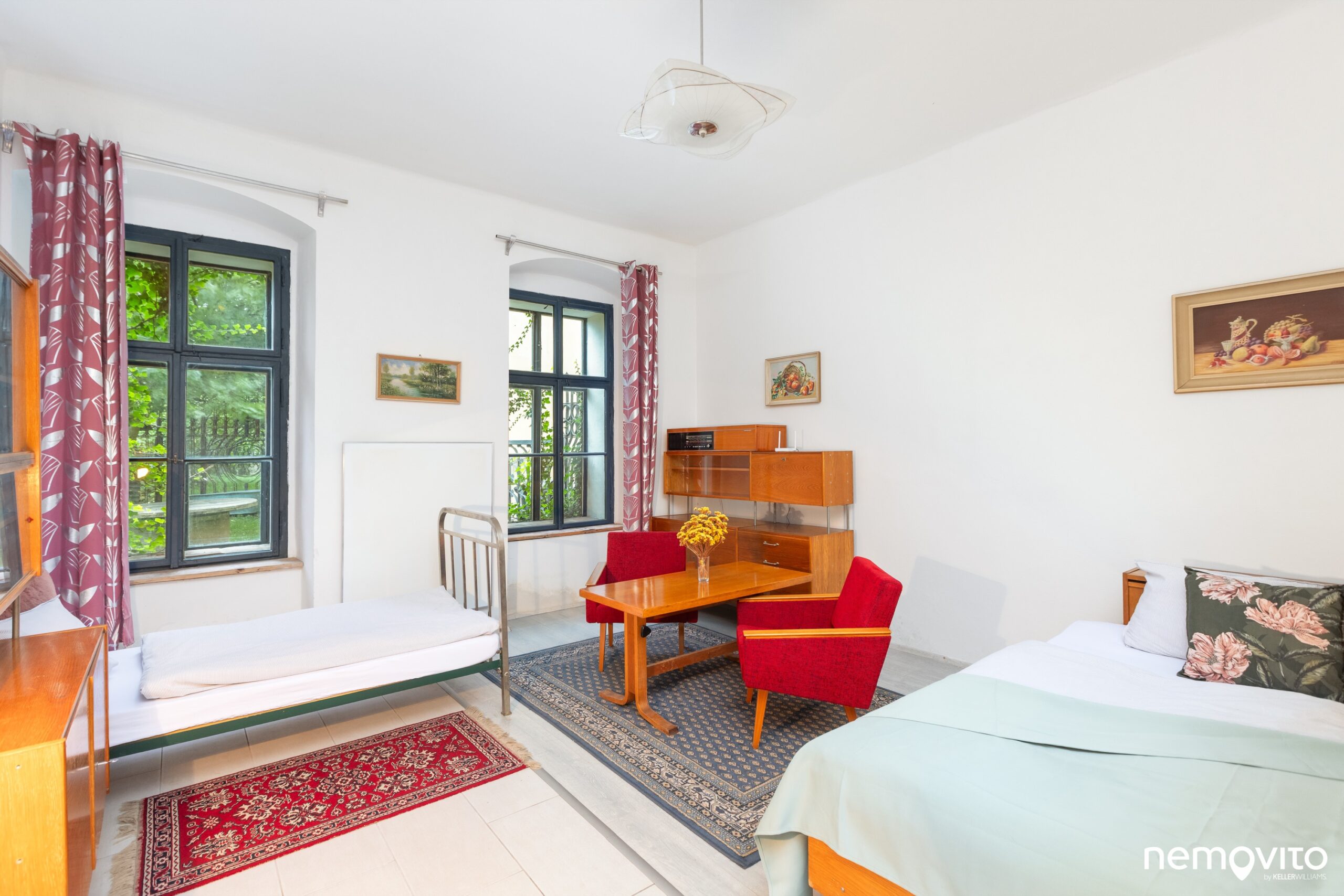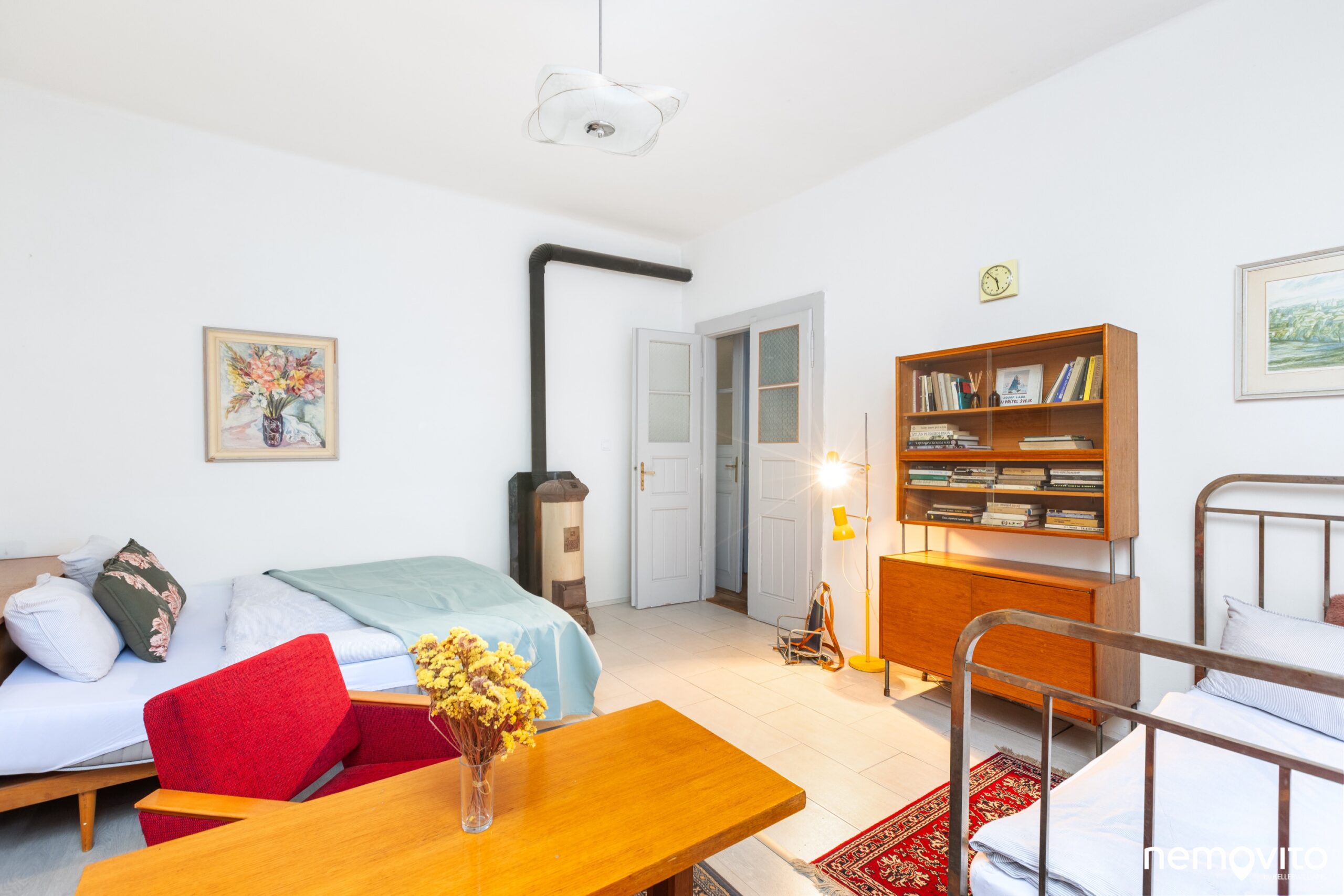 Druhým pokojem je pak socialistická komůrka s hromadou nábytku, který dobře známe od rodičů nebo našich babiček. Okna jsou do zahrady a kdo by chtěl kutit, může tedy klidně vytvořit dveře s výstupem přímo na pozemek. Velikost místnosti je 23 m2.