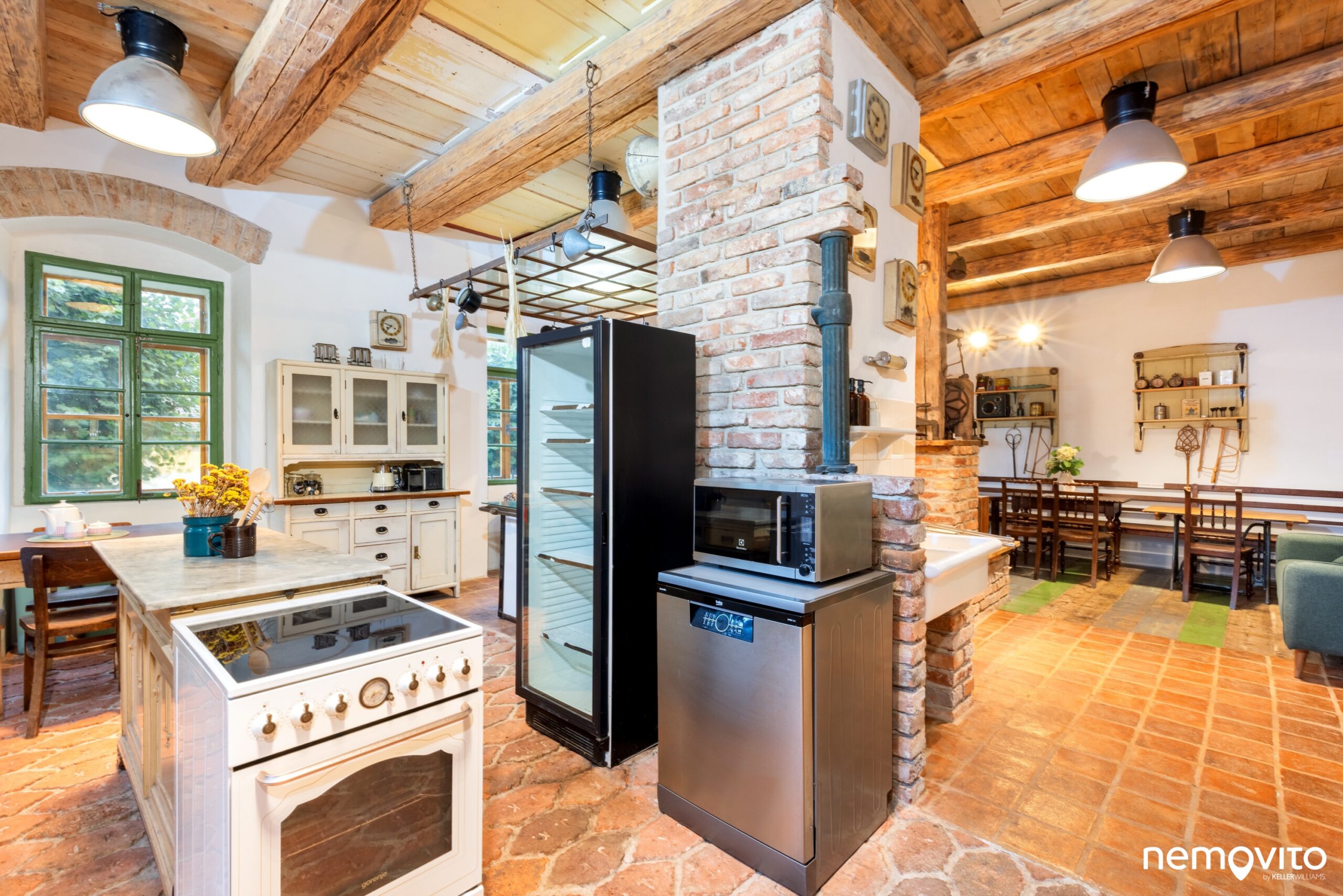 8 pokojů, 4 koupelny, velká společenská místnost s vysokými stropy, vinní sklípek, obrovská půda. A malý pozemek, který však dokonale poslouží svému účelu - posezení u grilu, špekáčky, kytara. Vždyť tady stejně víc nepotřebujete, trajdat mezi stromy můžete v nepřeberném množství okolních lesů. Kdo snad sní o spojení bydlení s podnikáním, pak i ten nepřijde zkrátka. Přímo v domě totiž můžete jednoduše využít jednu ze sekcí pro svoje vlastní bydlení. Kdyby člověk jó hodně chtěl, pak tady samozřejmě může klidně udělat několik bytů. Nicméně provoz penzionu má skutečně velmi zajímavý výnos, který se pohybuje mezi 1 až 1,5 milionem korun ročně. Kdo říkal, že pro krásu nutno ustoupit rozumu, ten by měl svoje slova vzít zpět. Tady totiž funguje i excelová tabulka. Na konci tohoto webu jednu malou najdete, teď si ale nekažme příjemnou chvilku. Cihly, kámen, dřevo, teplo a znovu dřevo. Za tlustými zdmi tohoto domu je všechno tak, jak to má být. Jako by se zastavil čas. A v dnešní době, kdy vám během hodiny na telefonu vylítne 50 notifikací a ze všech stran se ženou meetingy, cally a já nevim jaký všechny ještě chytrý cizí slova, je trocha toho zpomalení vítanou změnou. Jen si běžte naštípat dříví. Ohřejte si vodu klasicky na plotně.