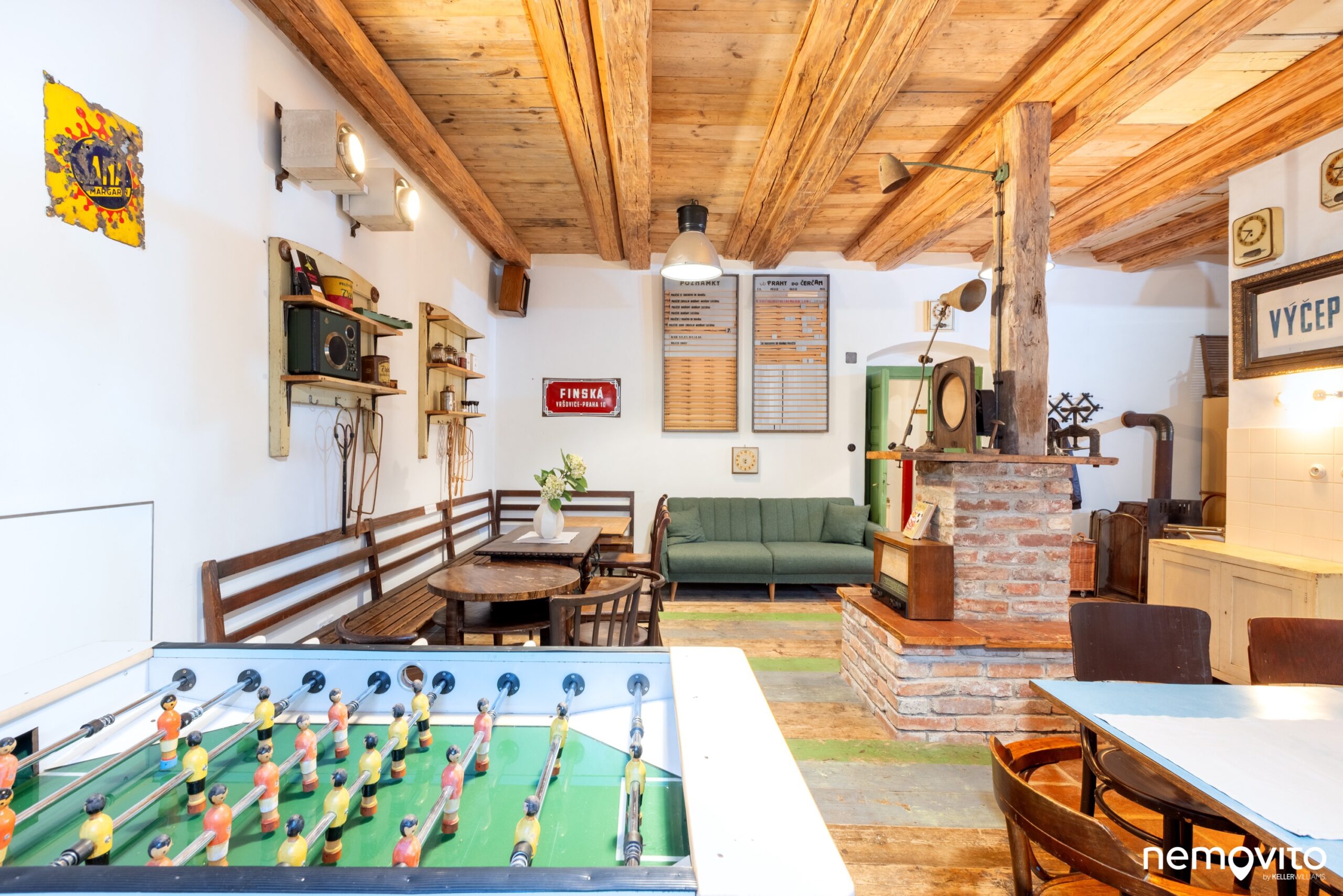 Místnost je vybavena tak, aby vám nebo vašim hostům sloužila od fotbálku až po příjemné posezení.