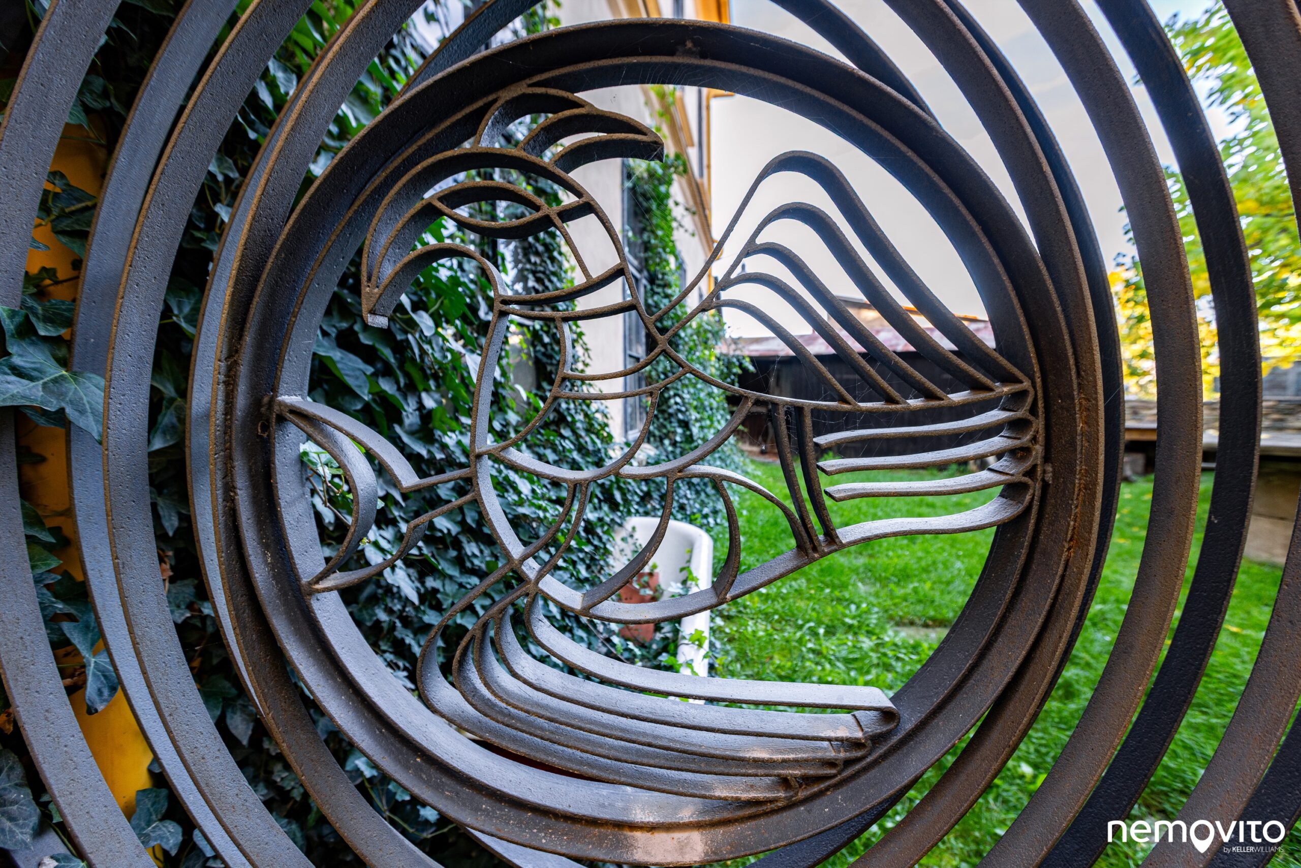 Zahrádka za domem má plochu zhruba 168 m2 a ani tady se nic nepodcenilo. V duchu množství detailů, které tvoří působivý celek, je řešena i masivní kovaná brána.