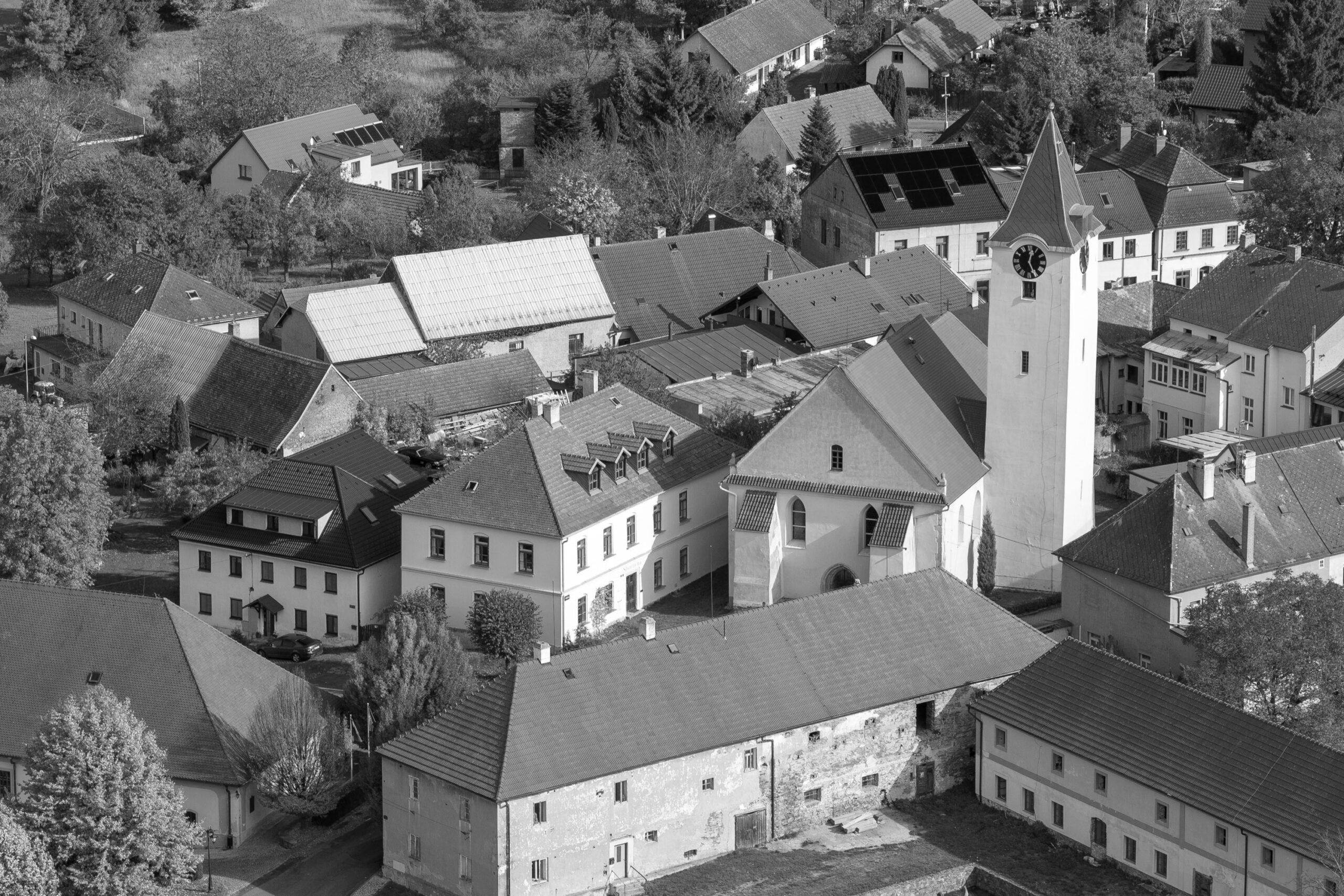 Objekt bývalé školy z 19. století stojí přímo vedle kostela sv. Vavřince. Dvoupodlažní, částečně podsklepená stavba s velkou půdou je starým poctivým domem s tlustými zdmi a ještě tučnější atmosférou, která je skutečně strhující.